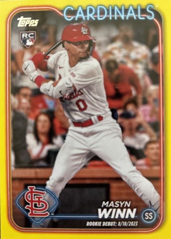 The Masyn Winn 2024 Topps Update #US272 Rookie Debut - Yellow card in Raw condition has moved up $0.94 (+67.6%) in the last 30 days and was last sold for $2.33 .
