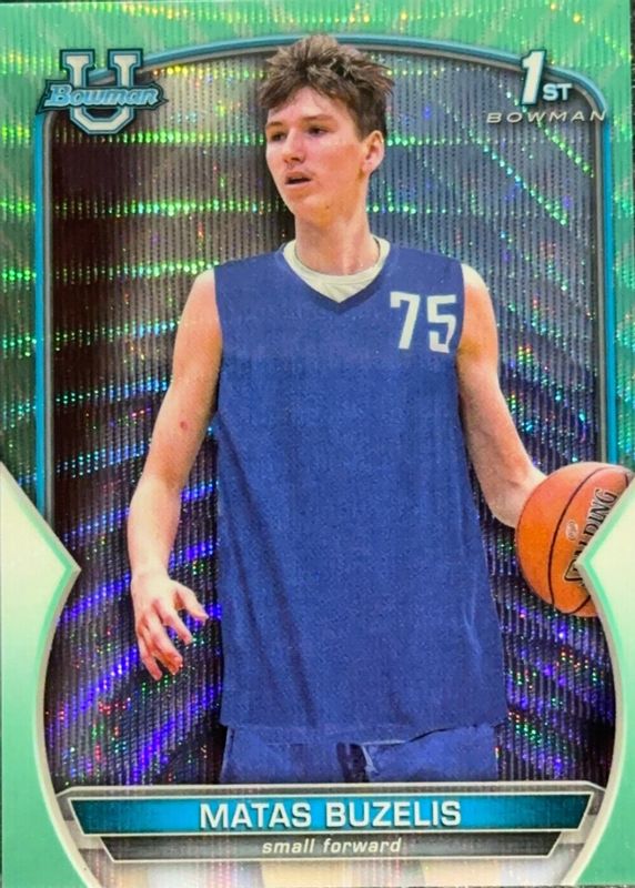 This card is 1 of 38 Matas Buzelis' card variations in the 2022 Bowman Chrome University set being tracked by Sports Card Investor, including Base (1st), Pink Refractor (1st), Purple Shimmer Refractor, Refractor (1st), and Shimmer Refractor (1st).