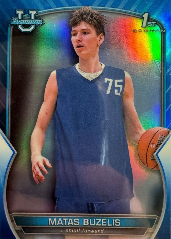 This card is 1 of 38 Matas Buzelis' card variations in the 2022 Bowman Chrome University set being tracked by Sports Card Investor, including Base (1st), Pink Refractor (1st), Purple Shimmer Refractor, Refractor (1st), and Shimmer Refractor (1st).