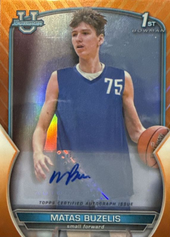 Auctions Ending Soon for Matas Buzelis 2022 Bowman Chrome University #84 Prospect Autographs - Orange Refractor /25 (1st) RAW