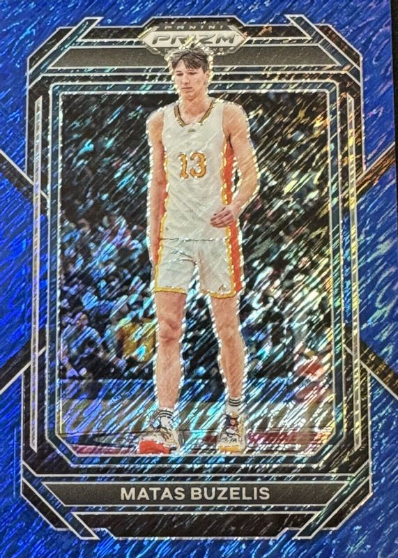 The Matas Buzelis 2023 Prizm Draft Picks #13 Blue Shimmer /19 card in Raw condition has not changed in price in the last 30 days and was last sold for $22.35 .