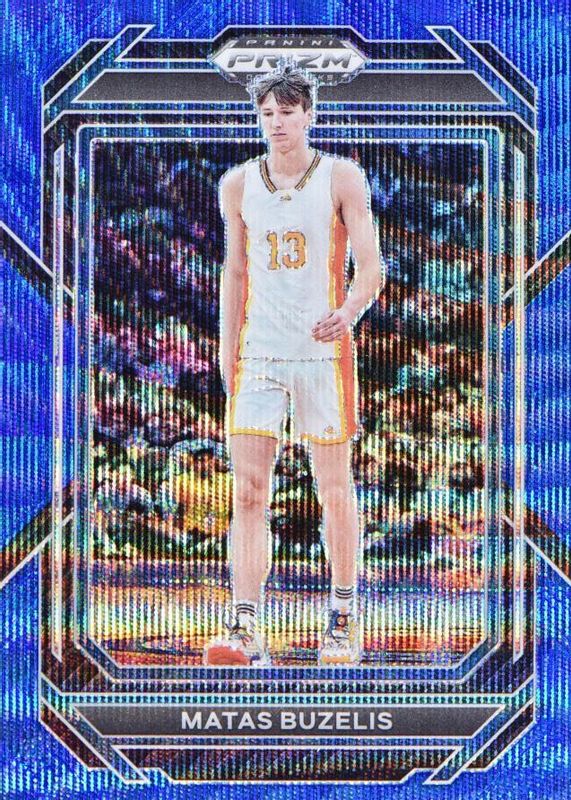 The Matas Buzelis 2023 Prizm Draft Picks #13 Blue Wave /249 card in Raw condition has not changed in price in the last 30 days and was last sold for $4.25 .