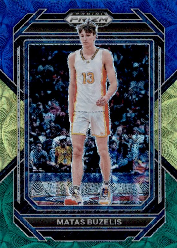 The Matas Buzelis 2023 Prizm Draft Picks #13 Choice Blue Yellow Green card in Raw condition has not changed in price in the last 30 days and was last sold for $3.25 .