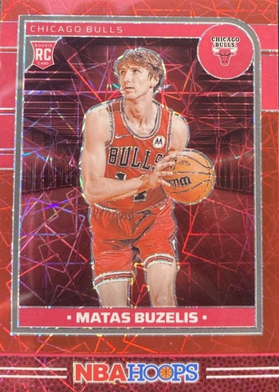The Matas Buzelis 2024 Hoops #241 Premium Red Lazer /99 Rookie card in Raw condition has not changed in price in the last 30 days and was last sold for $49.99 .