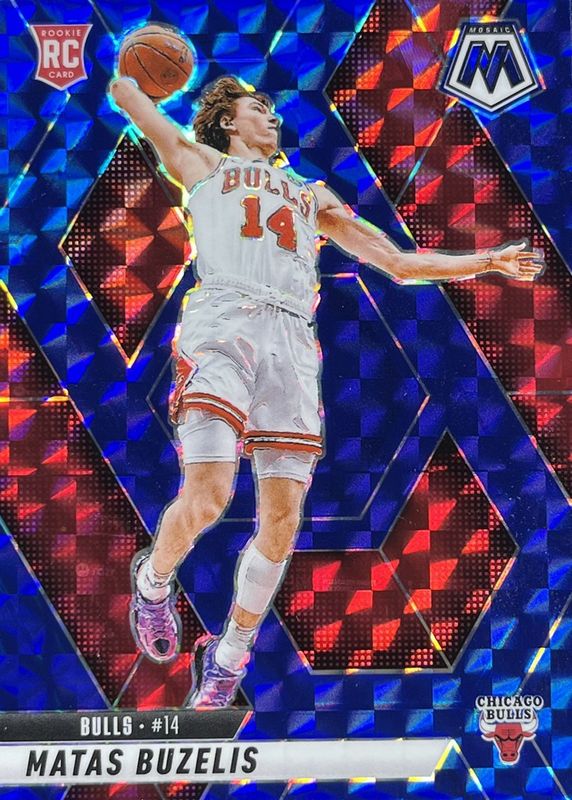 The Matas Buzelis 2024 Mosaic #223 Blue /199 Rookie card in Raw condition has moved down -$0.62 (-4.8%) in the last 30 days and was last sold for $12.38 .