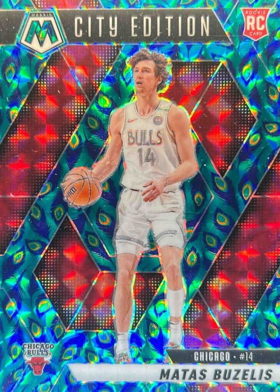 The Matas Buzelis 2024 Mosaic #273 City Edition - Choice Peacock /(SSP) Rookie card in Raw condition has not changed in price in the last 30 days and was last sold for $128.50 .