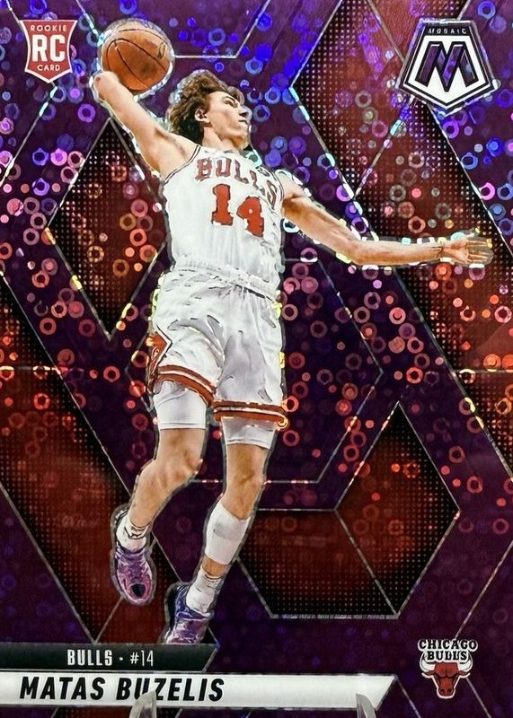 The Matas Buzelis 2024 Mosaic #223 Fast Break Purple /50 Rookie card in Raw condition has moved up $10.50 (+44.7%) in the last 30 days and was last sold for $34.00 .