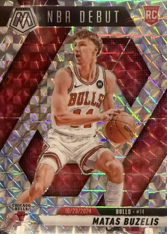 The Matas Buzelis 2024 Mosaic #257 NBA Debut - Mosaic Rookie card in Raw condition has moved up $0.26 (+26.3%) in the last 30 days and was last sold for $1.25 .