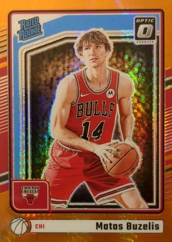 The Matas Buzelis 2024 Optic #271 Hyper Orange /299 Rookie card in Raw condition has moved up $15.23 (+225%) in the last 30 days and was last sold for $22.00 .
