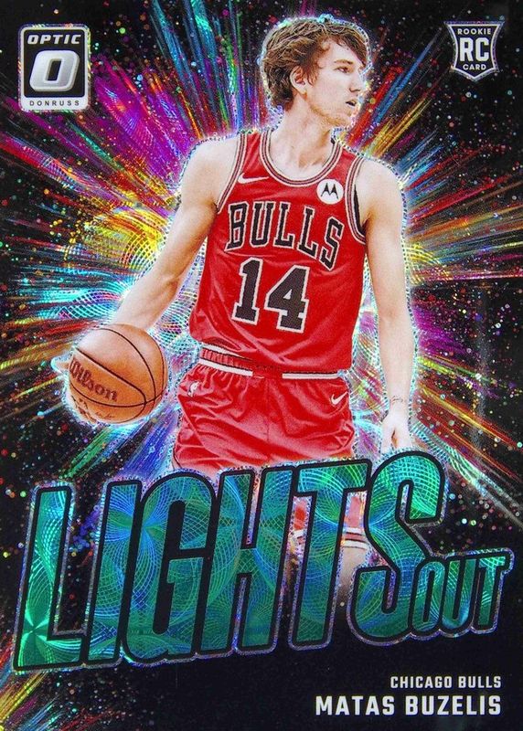 The Matas Buzelis 2024 Optic #6 Lights Out - International Green /25 Rookie card in Raw condition has not changed in price in the last 30 days and was last sold for $56.55 .