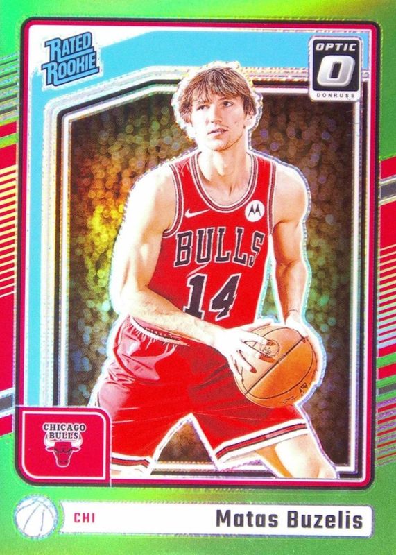 The Matas Buzelis 2024 Optic #271 Lime Green /149 Rookie card in Raw condition has moved up $10.50 (+72.4%) in the last 30 days and was last sold for $25.00 .