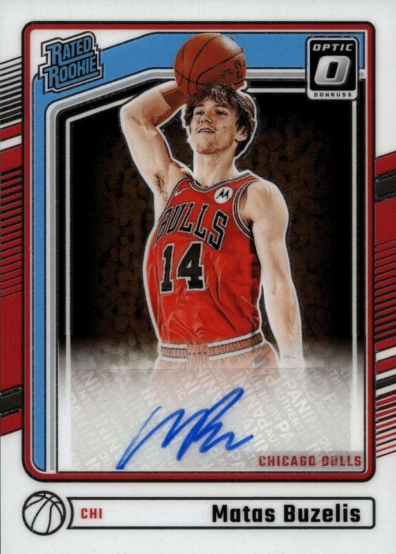 The Matas Buzelis 2024 Optic #306 Rated Rookie Signatures card in Raw condition has moved down -$26.00 (-34.2%) in the last 30 days and was last sold for $50.00 .