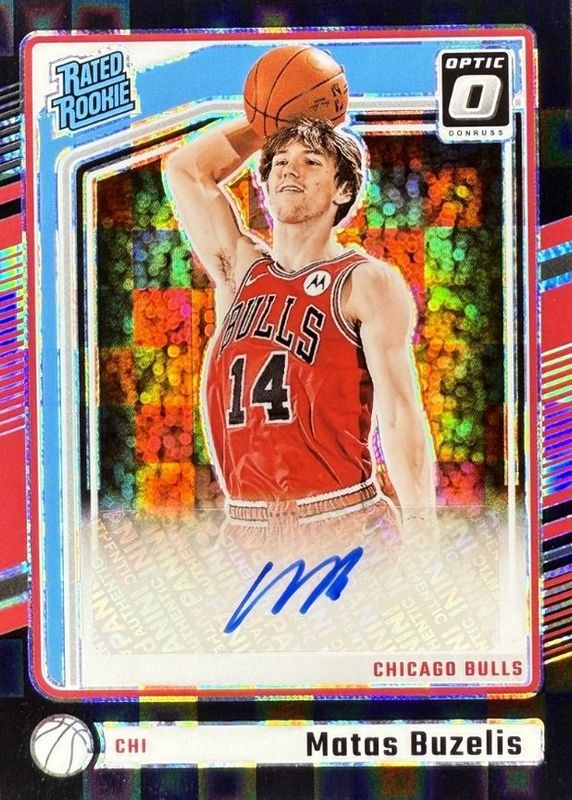 The Matas Buzelis 2024 Optic #306 Rated Rookie Signatures - Black Pandora /25 card in Raw condition has not changed in price in the last 30 days and was last sold for $559.00 .