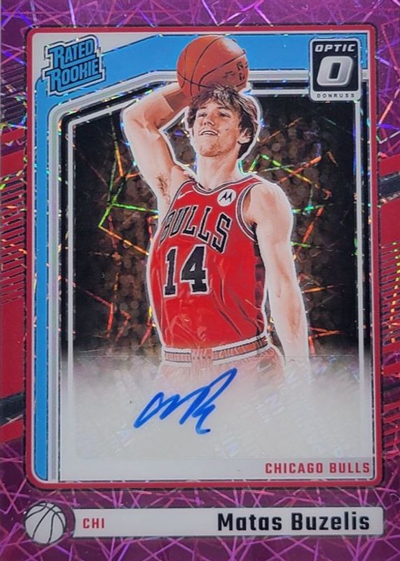 The Matas Buzelis 2024 Optic #306 Rated Rookie Signatures - Pink Velocity /79 card in Raw condition has moved down -$173 (-71.6%) in the last 30 days and was last sold for $68.51 .