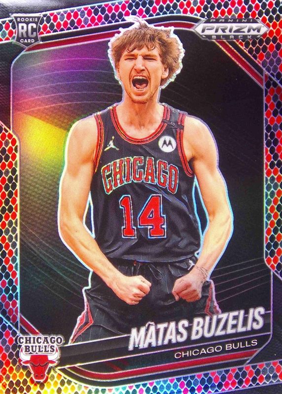 The Matas Buzelis 2024 Prizm Black #41 Snakeskin /(SSP) Rookie card in Raw condition has not changed in price in the last 30 days and was last sold for $416.00 .