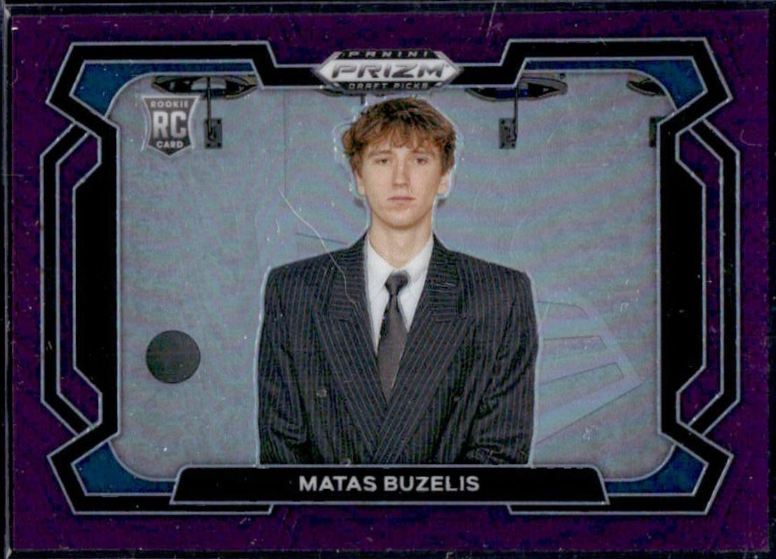 The Matas Buzelis 2024 Prizm Draft Picks #67b Purple /75 Rookie card is 1 of 166 Matas Buzelis' card variations in the 2024 Prizm Draft Picks set being tracked by Sports Card Investor, including #67 Base, #67b Base, #67 Green, #67b Green, and #67 Green Wave.