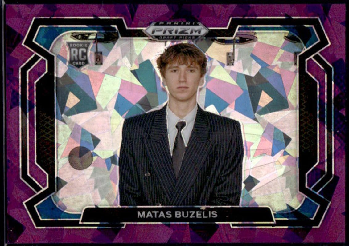 The Matas Buzelis 2024 Prizm Draft Picks #67b Purple Ice /149 Rookie card is 1 of 166 Matas Buzelis' card variations in the 2024 Prizm Draft Picks set being tracked by Sports Card Investor, including #67 Base, #67b Base, #67 Green, #67b Green, and #67 Green Wave.