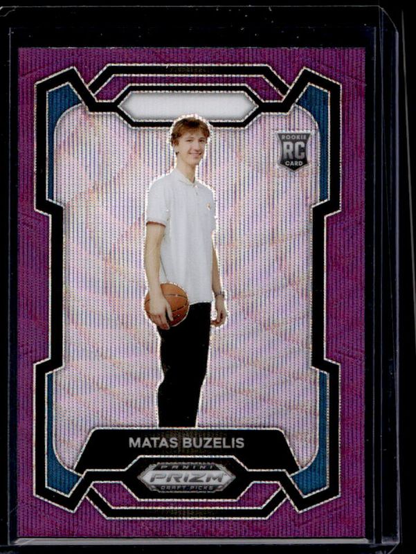 The Matas Buzelis 2024 Prizm Draft Picks #67 Purple Wave Rookie card is 1 of 166 Matas Buzelis' card variations in the 2024 Prizm Draft Picks set being tracked by Sports Card Investor, including #67 Base, #67b Base, #67 Green, #67b Green, and #67 Green Wave.
