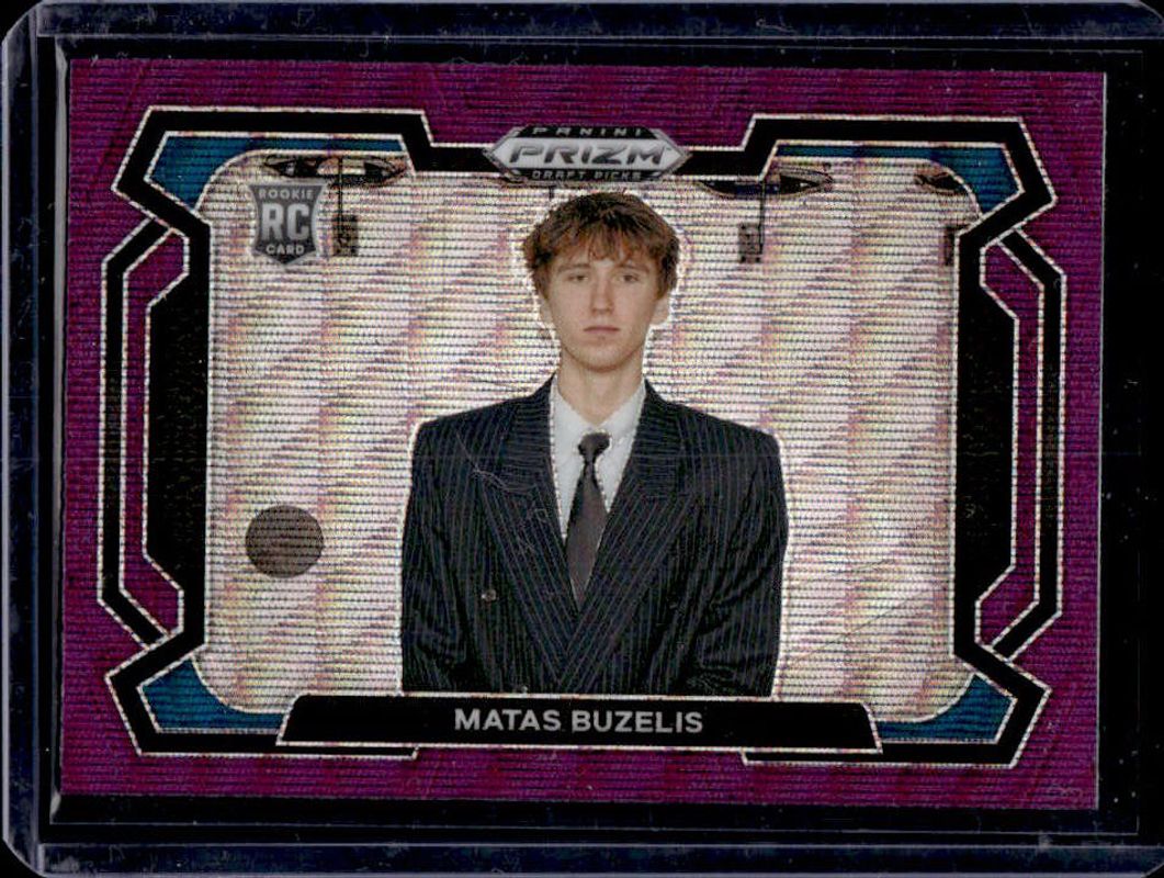 The Matas Buzelis 2024 Prizm Draft Picks #67b Purple Wave Rookie card is 1 of 166 Matas Buzelis' card variations in the 2024 Prizm Draft Picks set being tracked by Sports Card Investor, including #67 Base, #67b Base, #67 Green, #67b Green, and #67 Green Wave.