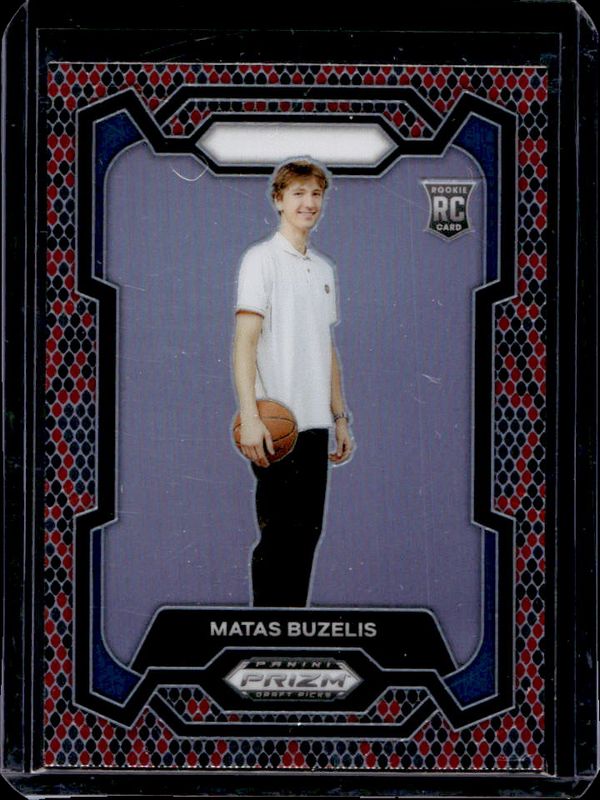The Matas Buzelis 2024 Prizm Draft Picks #67 Snakeskin /(SSP) Rookie card is 1 of 166 Matas Buzelis' card variations in the 2024 Prizm Draft Picks set being tracked by Sports Card Investor, including #67 Base, #67b Base, #67 Green, #67b Green, and #67 Green Wave.