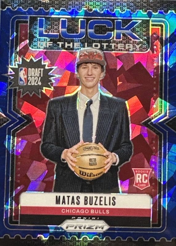 The Matas Buzelis 2024 Prizm #8 Luck of the Lottery - Blue Ice /125 Rookie card in Raw condition has moved up $1.48 (+29.5%) in the last 30 days and was last sold for $6.50 .