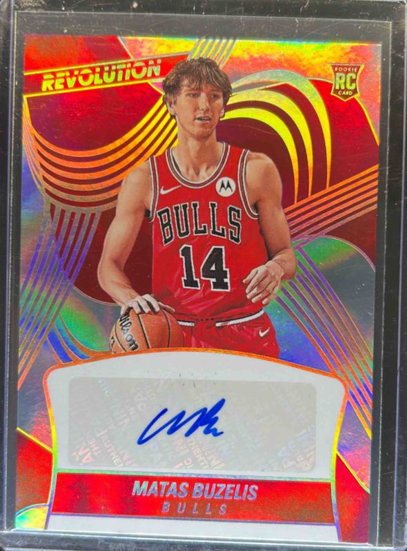 The Matas Buzelis 2024 Revolution #RA-BUZ Rookie Autographs - Infinite /25 card is 1 of 100 Matas Buzelis' card variations in the 2024 Revolution set being tracked by Sports Card Investor, including Base, Astro, Blue Storm, Chinese New Year, and Fractal.