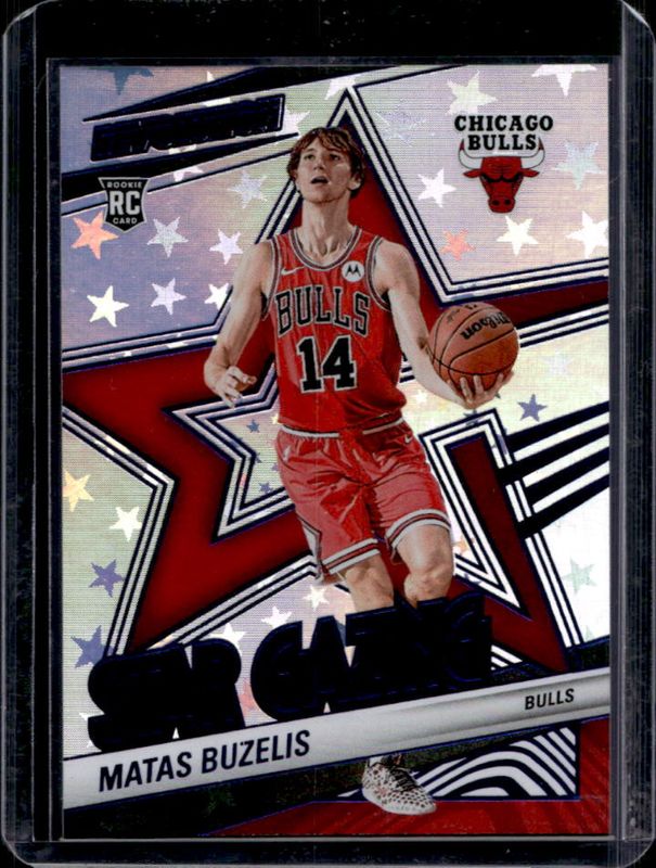 The Matas Buzelis 2024 Revolution #13 Star Gazing - Blue Astro /99 Rookie card is 1 of 100 Matas Buzelis' card variations in the 2024 Revolution set being tracked by Sports Card Investor, including Base, Astro, Blue Storm, Chinese New Year, and Fractal.