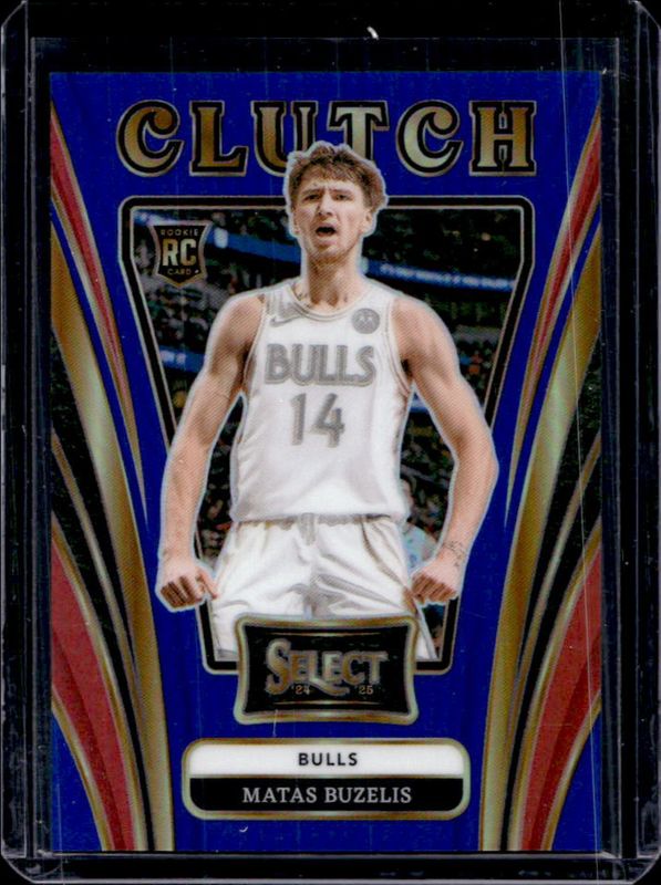 The Matas Buzelis 2024 Select #12 Clutch Blue /75 Rookie card is 1 of 358 Matas Buzelis' card variations in the 2024 Select set being tracked by Sports Card Investor, including Concourse, Courtside, Mezzanine, Premier Level, and Concourse Blue Cracked Ice.