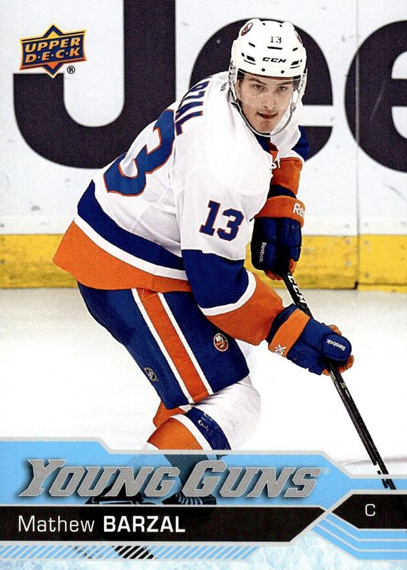 This card is 1 of 9 Mathew Barzal's card variations in the 2016 Upper Deck set being tracked by Sports Card Investor, including Young Guns Base, Young Guns Canvas, Young Guns - Clear Cut, Young Guns - Gold Rainbow Foil, and Young Guns - Silver Foil.