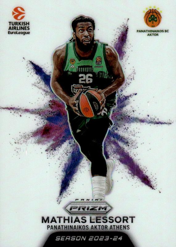This card is 1 of 22 Mathias Lessort's card variations in the 2023 Prizm EuroLeague set being tracked by Sports Card Investor, including Base, Basketballs, Green, Ice, and Silver.