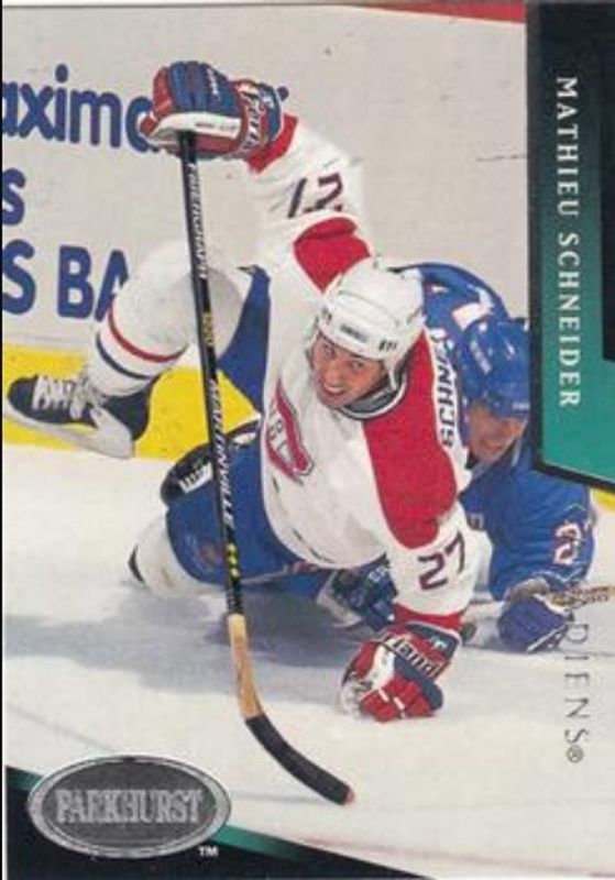 The Mathieu Schneider 1993 Parkhurst #373 Base card is 1 of 2 Mathieu Schneider's card variations in the 1993 Parkhurst set being tracked by Sports Card Investor, including Emerald Ice.