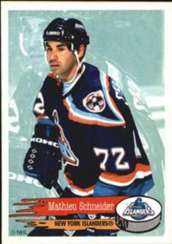 The Mathieu Schneider 1995 Panini Stickers #99 Base card is 1 of 2 Mathieu Schneider's card variations in the 1995 Panini Stickers set being tracked by Sports Card Investor, including Base.