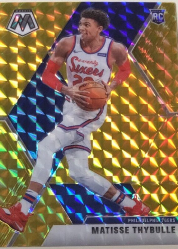 The Matisse Thybulle 2019 Mosaic #245 Gold /10 Rookie card in Raw condition has not changed in price in the last 30 days and was last sold for $90.00 .