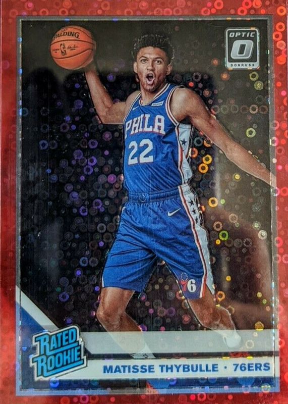 The Matisse Thybulle 2019 Optic #192 Fast Break Red /85 Rookie card in Raw condition has not changed in price in the last 30 days and was last sold for $15.19 .