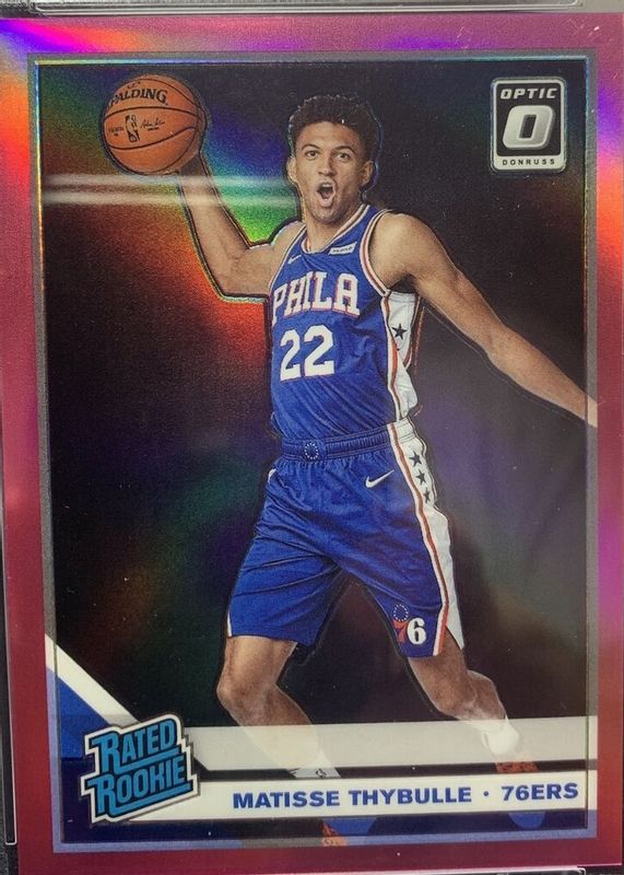 The Matisse Thybulle 2019 Optic #192 Pink /25 Rookie card in Raw condition has not changed in price in the last 30 days and was last sold for $20.00 .