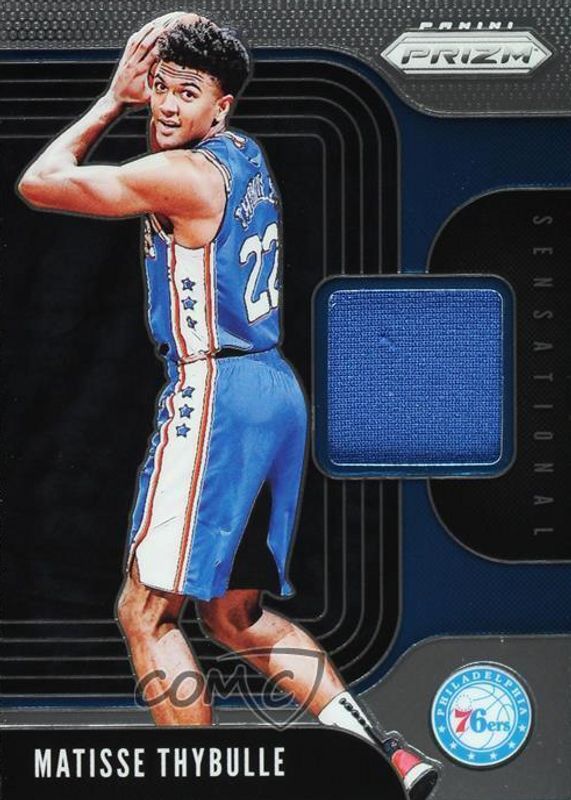 The Matisse Thybulle 2019 Prizm #SS-MTY Sensational Swatches Rookie card in Raw condition has not changed in price in the last 30 days and was last sold for $3.00 .