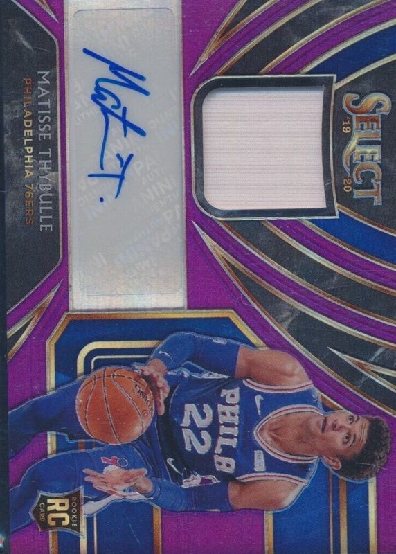 The Matisse Thybulle 2019 Select #RJA-MTH Rookie Jersey Autographs - Purple /99 card in Raw condition has not changed in price in the last 30 days and was last sold for $2.74 .