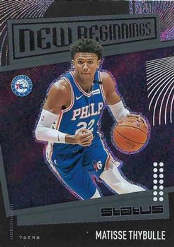 The Matisse Thybulle 2019 Status #14 New Beginnings Rookie card is 1 of 14 Matisse Thybulle's card variations in the 2019 Status set being tracked by Sports Card Investor, including Base, Blue, Red, White Diamonds /125, and Green Escher Squares /49.
