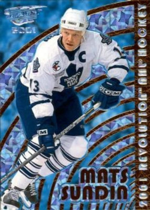The Mats Sundin 2000 Pacific Revolution #140 Base card is 1 of 7 Mats Sundin's card variations in the 2000 Pacific Revolution set being tracked by Sports Card Investor, including Red /99, Shadow Series Blue /85, Premiere Date /60, HD NHL, and NHL Icons.