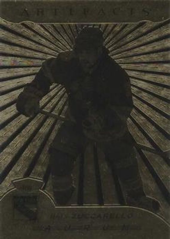 The Mats Zuccarello 2017 Upper Deck Artifacts #A-22 Aurum card is 1 of 17 Mats Zuccarello's card variations in the 2017 Upper Deck Artifacts set being tracked by Sports Card Investor, including Base /799, Materials Silver /125, Auto Material Silver /99, Emerald /99, and Orange /55.