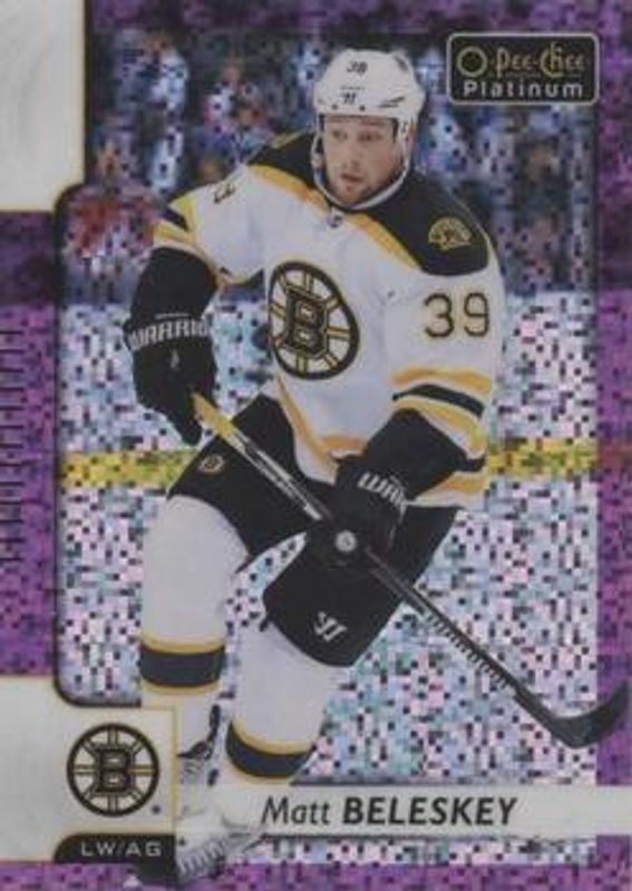 The Matt Beleskey 2017 O-Pee-Chee Platinum #76 Violet Pixels card is 1 of 14 Matt Beleskey's card variations in the 2017 O-Pee-Chee Platinum set being tracked by Sports Card Investor, including Base, Rainbow, Red Prism /199, Royal Blue Cubes /99, and Seismic Gold /50.