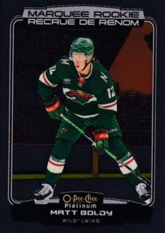 The Matt Boldy 2022 O-Pee-Chee Platinum #202 Base Rookie card is 1 of 42 Matt Boldy's card variations in the 2022 O-Pee-Chee Platinum set being tracked by Sports Card Investor, including Matte Pink, Neon Yellow Surge, Rainbow, Sunset, and Hot Magma /499.
