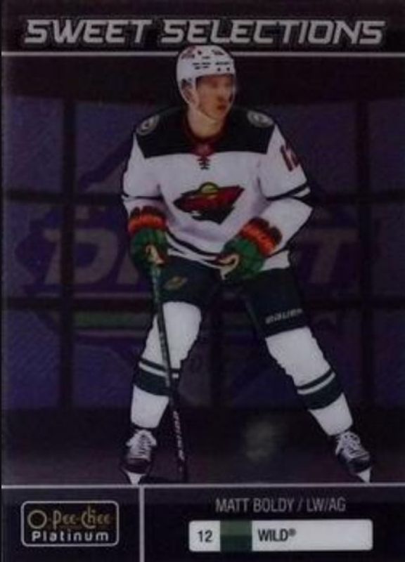 The Matt Boldy 2022 O-Pee-Chee Platinum #SS-12 Sweet Selections Rookie card is 1 of 42 Matt Boldy's card variations in the 2022 O-Pee-Chee Platinum set being tracked by Sports Card Investor, including Base, Matte Pink, Neon Yellow Surge, Rainbow, and Sunset.