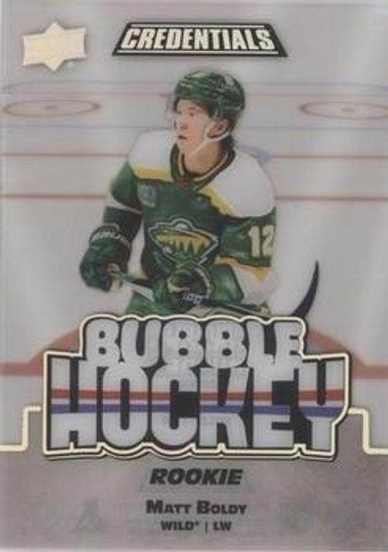 Matt Boldy 2022 Upper Deck Credentials #BHR-MB Bubble Hockey Rookies RAW Price Guide
