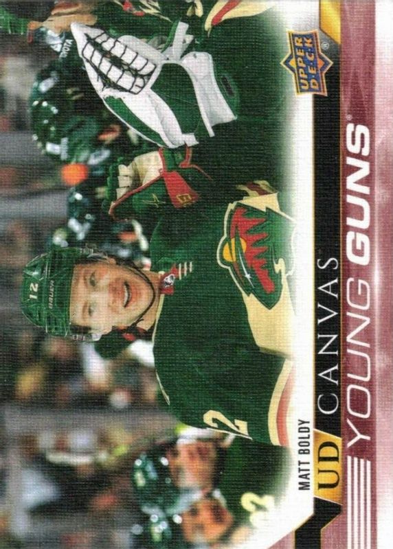 The Matt Boldy 2022 Upper Deck #C93 Young Guns Canvas Rookie card in Raw condition has moved down -$5.50 (-30.6%) in the last 30 days and was last sold for $12.50 .