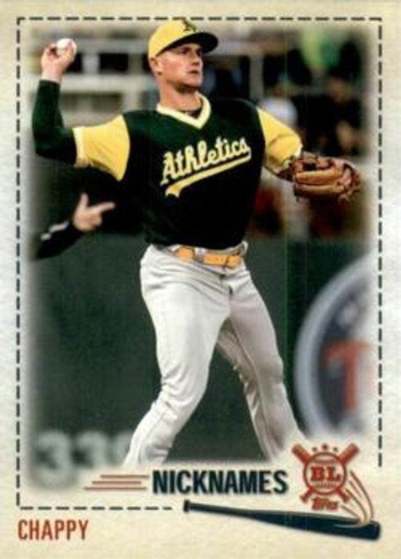 The Matt Chapman 2019 Topps Big League #PW-3 Players' Weekend Nicknames card is 1 of 11 Matt Chapman's card variations in the 2019 Topps Big League set being tracked by Sports Card Investor, including Base, Blue, Gold, Rainbow Foil /100, and Artist Rendition /50.
