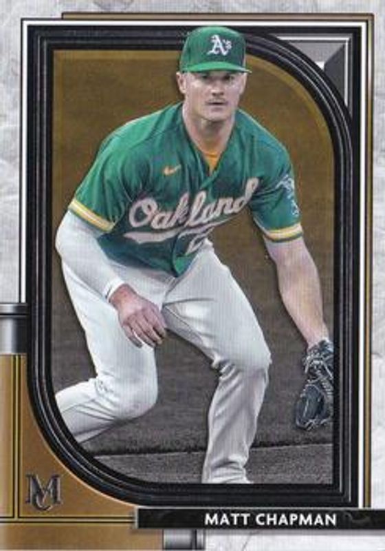 The Matt Chapman 2021 Topps Museum Collection #18 Base card is 1 of 23 Matt Chapman's card variations in the 2021 Topps Museum Collection set being tracked by Sports Card Investor, including Copper, Sapphire /150, Amethyst /99, Ruby /50, and Emerald /1.