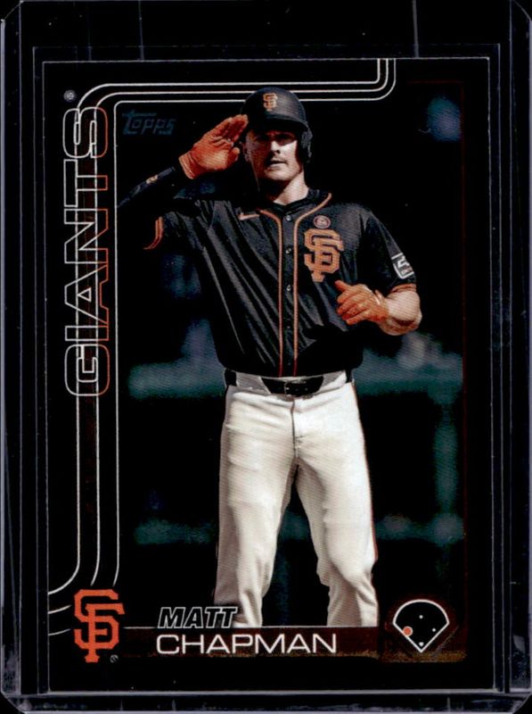 The Matt Chapman 2025 Topps #221 Black /74 card is 1 of 135 Matt Chapman's card variations in the 2025 Topps set being tracked by Sports Card Investor, including Base, Aqua Holo Foil, Diamante Foil, Holo Foil, and Pink Diamante Foil.