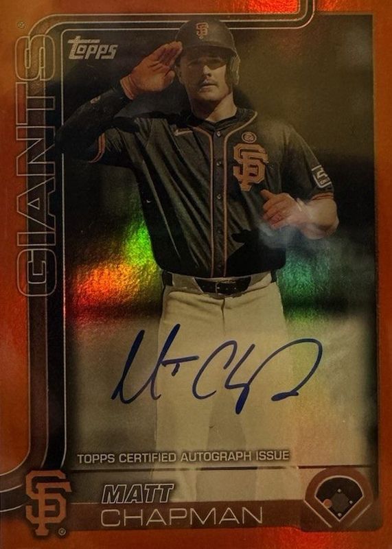 Auctions Ending Soon for Matt Chapman 2025 Topps #221 Flagship Real One Autographs - Orange Foil /25 RAW
