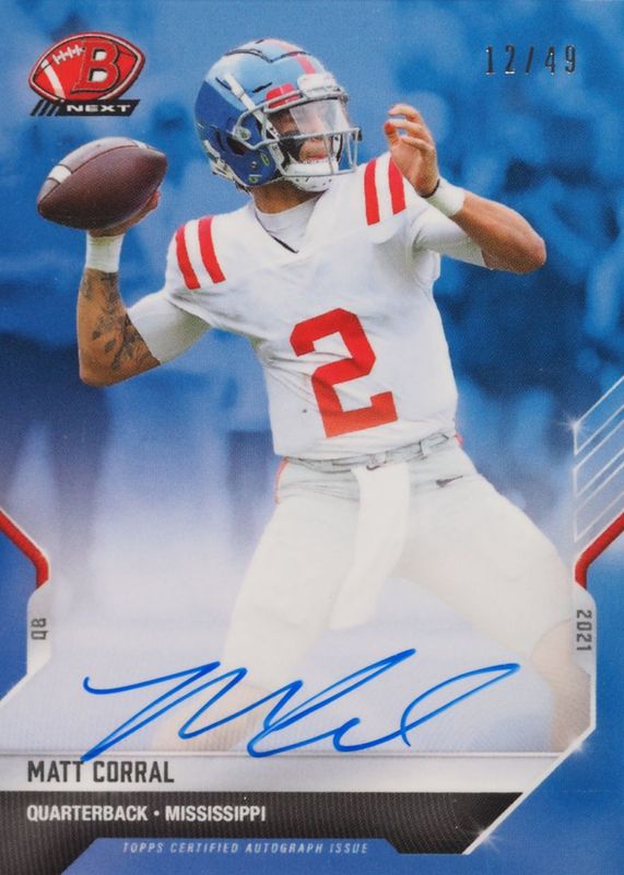 Matt Corral 2021 Bowman Next #5 Autographs - Blue /49 RAW Price Guide